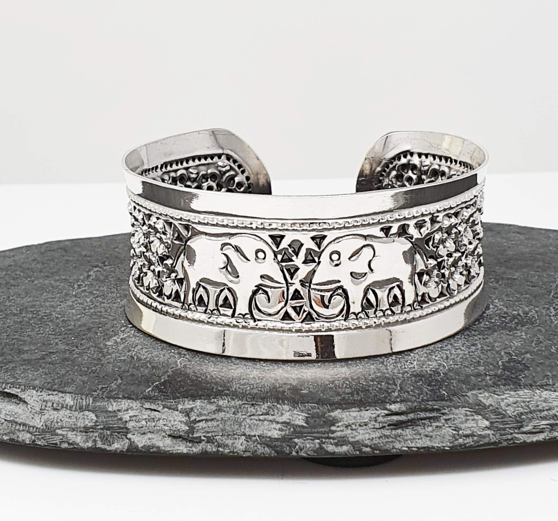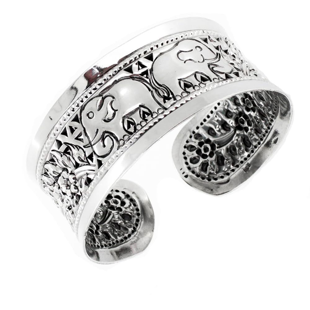 - High quality handcrafted 925 sterling silver womens elephant silver cuff bangle bracelet