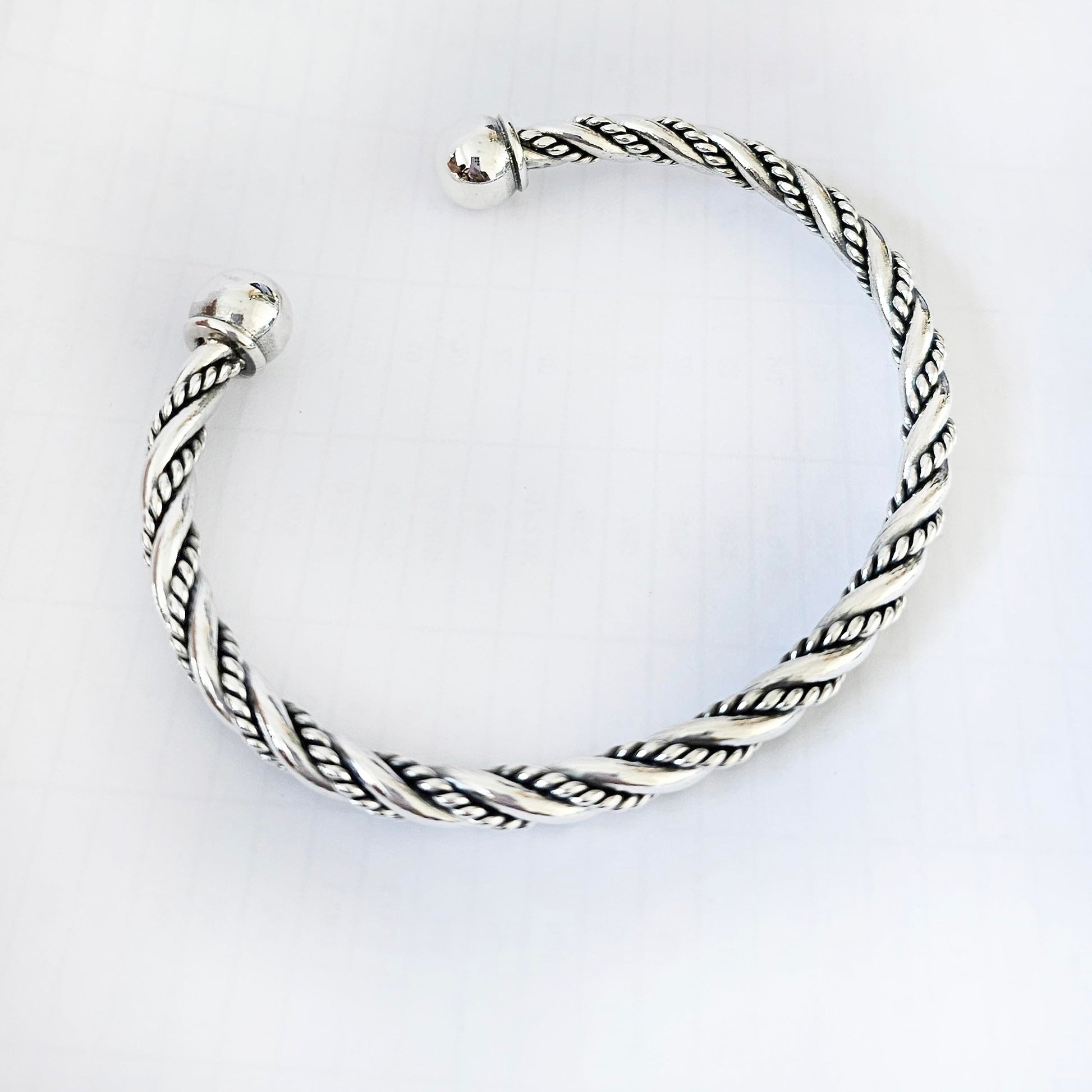 - High quality handcrafted 925 sterling silver men's silver torque bangle bracelet