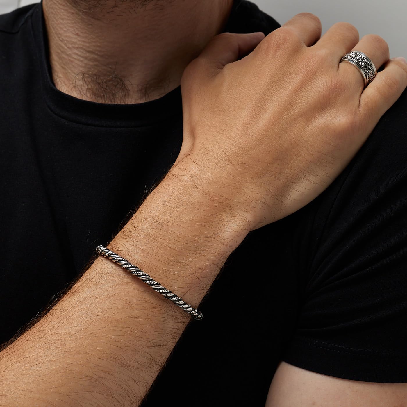 Torque Bangle | 925 Sterling Silver Bracelet for Men - Ideal Gift for Him