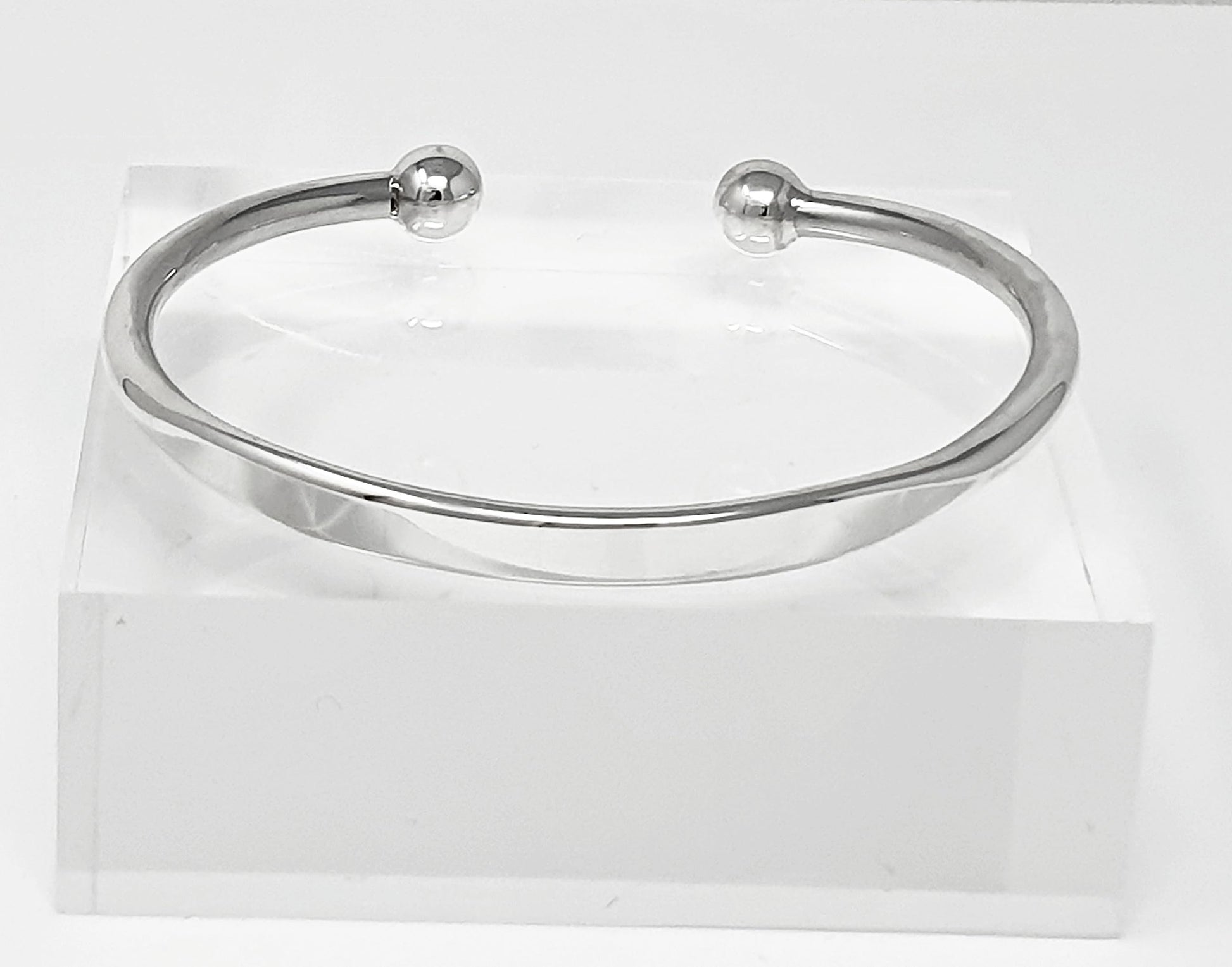 Men's Silver Torque Bangle | Solid 925 Sterling Silver Plain Bracelet - Gift for Him
